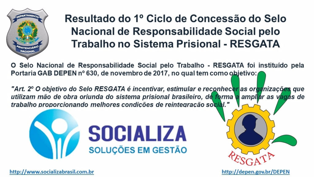 SOCIALIZA É CERTIFICADA PELO SELO RESGATA DO DEPEN.